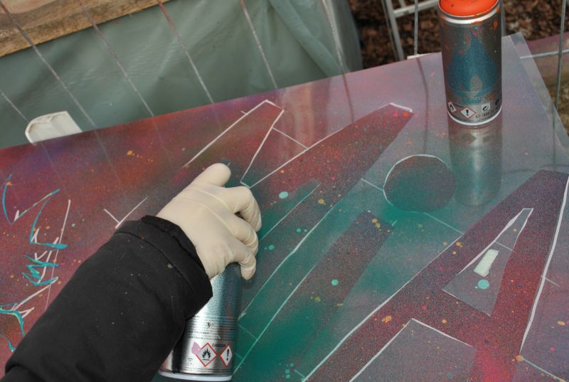 +++ The girls* at the graffiti have not only produced the most colorful backgrounds and sprayed their (sprayer) names, no no, but finely cut out with stencil and added shadows. The whole decorated with an Animé. How cool is that!